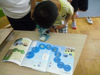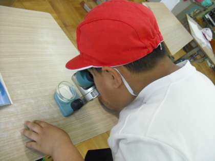 ということで,理科室から双眼実体顕微鏡を借りてきて観察してみることにしました。