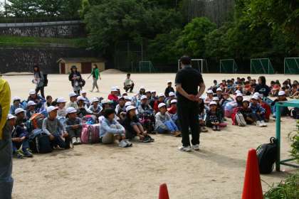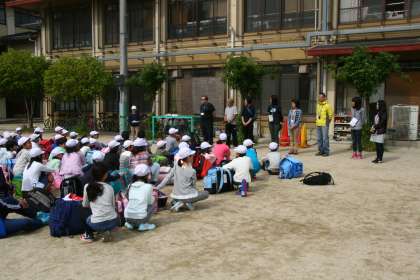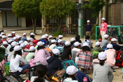 出発式では校長先生のお話のあと、引率の先生方の紹介、そして何よりも、大きな大きな元気いっぱいの「おはようございます!」の声を残し、4年生に見送られて出発しました。