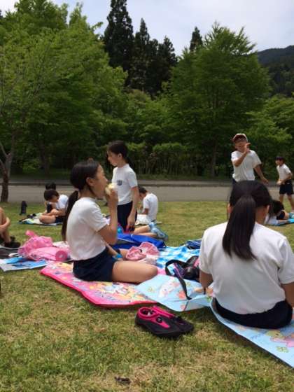 お家の方に作っていただいたおにぎりやサンドイッチを、大きな口をあけてほおばっています!