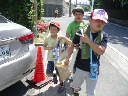 学校前の長い上り坂も,競争しながら帰りました。