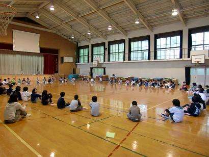 いよいよ明日から「花背山の家」での長期宿泊自然体験学習が始まります。5年生は、体育館で大きな輪になって、一人ひとりの目当てと決意を発表しました。明日から、すばらしい4泊5日の体験学習が待っています。