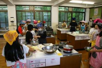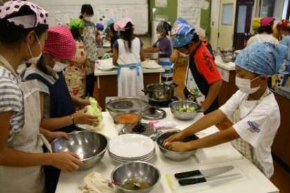 5年生の調理実習、カラフルコンビネーションサラダ。