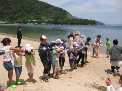 藤城少年補導委員会主催による「地引網体験」。福井県の敦賀(つるが)気比(けひ)海岸での体験活動です。