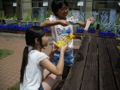 「電池のはたらき」もいよいよ終盤にさしかかってきました。今日はお天気にもばっちりと恵まれて、光電池の実験を中庭でしました。どういう向きで光電池を使うと、検流計のアンペアーの数値が上げられるかを工夫しながら、楽しく実験を進めることができていました。