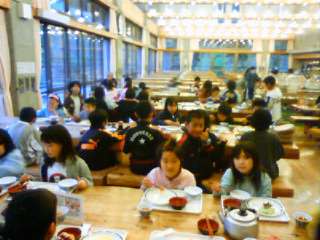 夕食は自分で野菜や魚や肉のおかずを選んで、おいしくいただきました。サラダも大人気でした。夜は、プレイボールで体をゲームを楽しんでから反省会、就寝です。