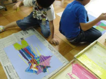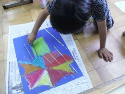 まるでスタンプみたいに,ポンポンと雨を表現できるので,子どもたちは楽しそうに活動していました。