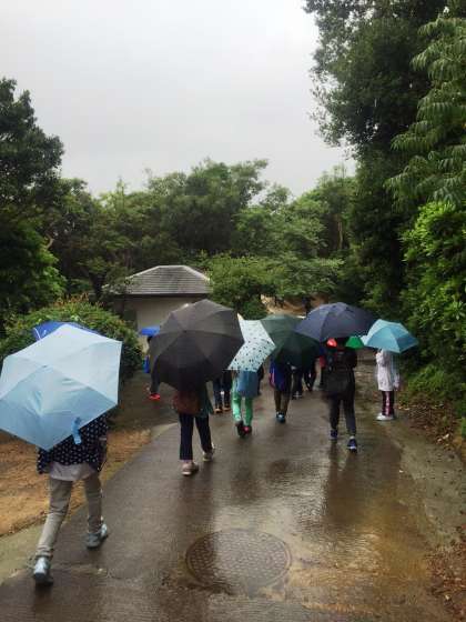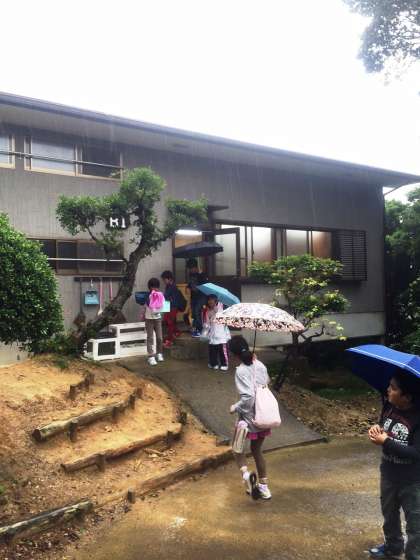 晴れていたらテントで泊まる予定でしたが、あいにくの天候。子どもたちはロッジで泊まることになります。