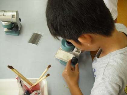 シロアリが食べたものの色によってシロアリの体の色が変わることや,ボールペンで描いた線の上は規則正しく歩くのに,鉛筆の上は歩かないことを,実験から学びました。ボールペンには,シロアリの道しるべになる「フェロモン」のようなものが混じっているためだそうです。楽しい学習でした。