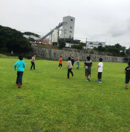 細かな雨が落ちてきたりもしているようですが、広い芝生の上で、思いっきりはじけています。