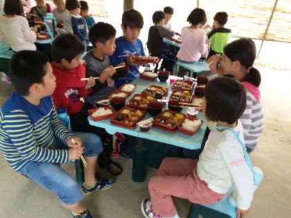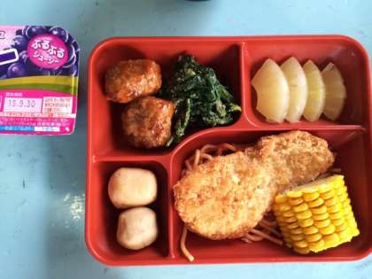 お弁当、ご飯、お味噌汁、グレープゼリー付き。