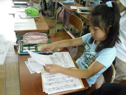 自分の手元にもどってきた用紙1枚1枚に目を通している子など、初めての経験にちょっと興奮気味の子ども達でした。