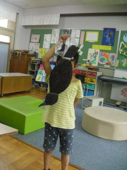 今年は、野菜つくりをがんばっています。先日から、キュウリやナスが少しづつ収穫できています。ところが、トマトは、収穫前になると。鋭利な刃物を突き刺したような傷がつていて、ほとんど収穫ができません。傷跡から見て、カラスがつばんだ後のようです。そこで、みんなで相談して、案山子を作ることにしました。ある畑で見た、案山子を作ることにしました。それは、写真のように、黒く塗ったカラスのようなものをぶら下げます。カラスが、自分の仲間が捕まったと、勘違いしてくれることを期待したものです。賢いカラスのことですから、果たして効果があるか…。これで、しばらく様子を見ることにしました。