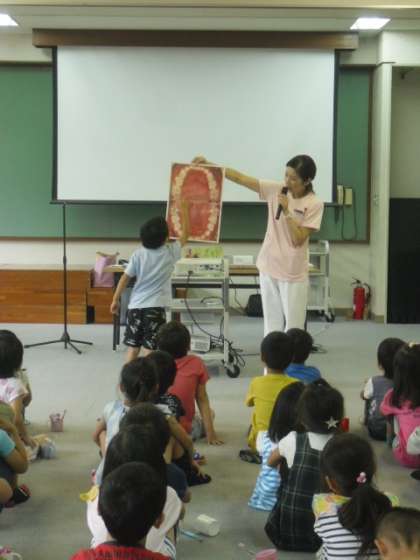 今日は,歯科衛生士さんに来ていただいて,どうして虫歯になるのかを紙芝居やお話をききながら学習しました。初めて知ることもたくさんあり,興味津々にお話を聞いていました。虫歯のもとは歯垢で,それをっかりとるために歯ブラシの上手な仕方も教えていただきました。「ここを磨くぞ」と意識して磨いていってほしいなと思います。