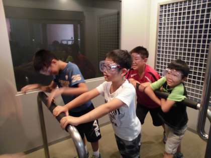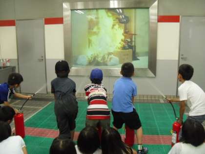 午後は,防災センターに行き色々な体験をしました。暴風体験に地震体験,避難体験に消火体験など,全部で6つのコーナーを体験することができ,子どもたちも楽しみながら学習することができました。全体験が終わった後もさすがは子どもたち。「○○体験,もう一回やりたい〜!!」と元気いっぱいの子どもたちでした・・・。