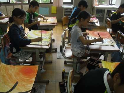 図工「夕日のある風景」