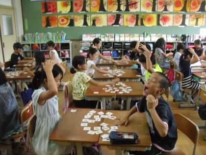 集中して英語を聞き取り,楽しみながらカードゲームに取り組んでいました。