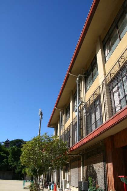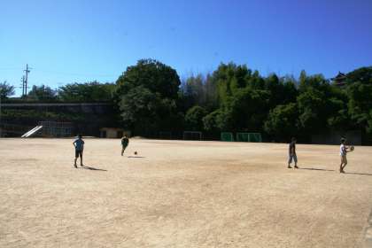 バツグンの青空と、ひまわり、そしてグラウンドで遊び始める子どもたち...。