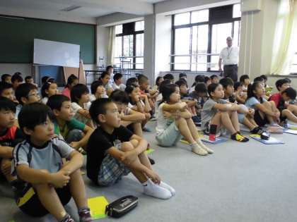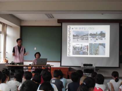 防災マップ作りもひと段落したところで,今日は,地域の自主防災会の方々にきていただき,地域での防災への取組などについてお話を聞かせていただきました。自分たちでは調べられないことがたくさんあり,とても有意義な時間を過ごすことができました。「自分たちがこんなに地域の人たちに守られていることを初めて知りました。」という子どもたちの感想に,学びの大きさを感じることができました。