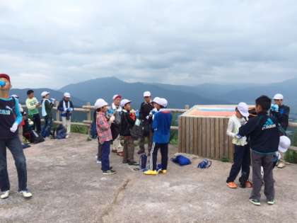 みんな頑張って長い坂道を登り切りました。展望台からの眺めは最高です。