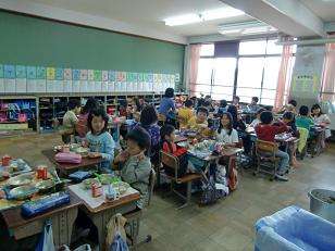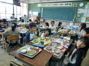 今日の献立の主菜は、子ども達に大好評のカレー味の肉じゃがです。グループで仲良く、「いただきます!」。とてもおいしくいただきました。