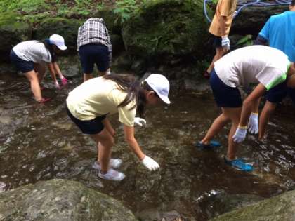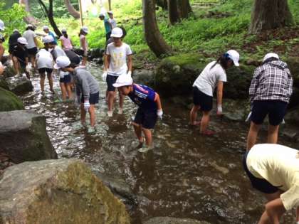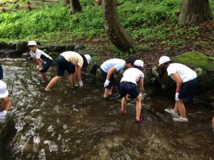 「さあ、捕まえるぞぉ〜」と、意気盛んに川に入って魚を捕まえる子どもたち。