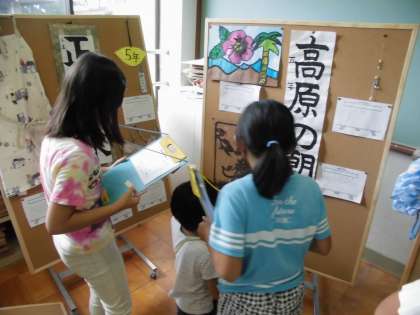 夏休みの作品展の鑑賞をしました。友だちの作品に興味津々で見入っていました。「来年は何作ろっかな?」なんて考えながら鑑賞している子もたくさんいたのではないでしょうか。