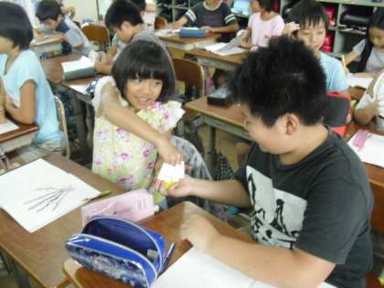 普段当たり前のようにまげている関節の働きとそのありがたさを、身をもって実感していた子ども達でした。
