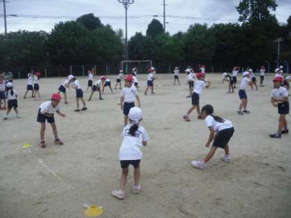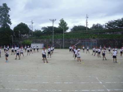 狭い体育館から,広い運動場に出て,はじめは並び方などとまどうことがありましたが,何度も練習するうちに,さっと並ぶことができるようになってきました。
