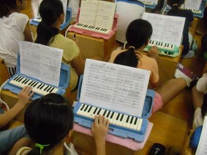 音楽では,八木節を鍵盤ハーモニカで演奏しています。