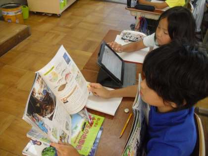 タブレット端末を使ったり,資料集を使ったりと,調べたいことに応じて資料を使い分けていました。