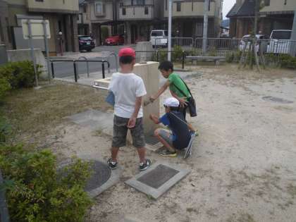 今日は,事前に何を伝えるのか話し合っていたことをもとにして,校区に出かけました。