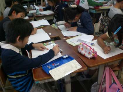 先週のスーパーマーケットの社会見学では,スーパーのひみつや工夫について調べてきました。今日は,グループで見つけた工夫を出し合い,全体で交流しました。自分が気づいていない工夫にもたくさん気づくことができました。