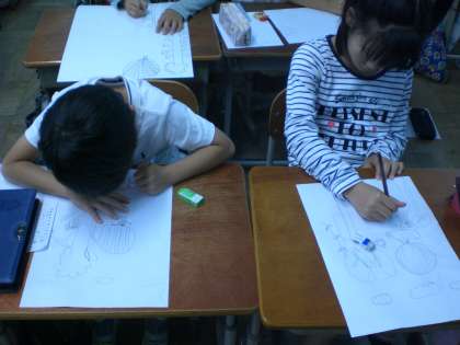 みんな楽しみながら,描いていました。