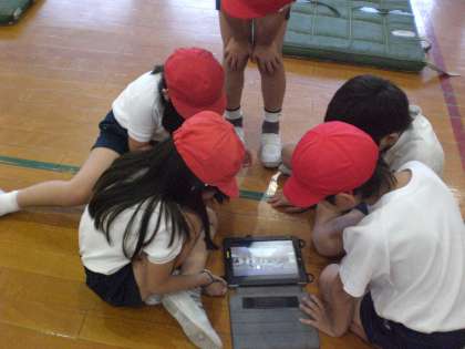 今日はマットの下にいつもより大きな坂道を作ってスムーズに回転するための練習を頑張っていました。またIpadも使いこなし,動画を見ながら自分の改善点を見つけては練習をする姿も見せてくれました。次時からはマット運動も後半戦。自分の技のレベルをどんどん上げていきましょう。