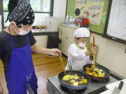 収穫したサツマイモでクッキング!