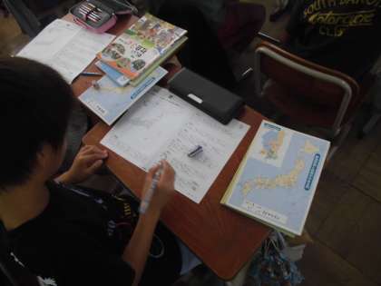 社会の時間に,各都道府県がどこにあるか調べました。みんな,必死になって調べていました。クラスの中には,都道府県をすべて知っている子もいて,すらすら都道府県名を書いていました。