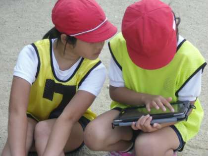 先週の金曜日から、タブレット端末を取り入れて自分の跳び越し方のフォームを確かめています。