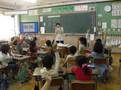 今日の献立に入っている野菜のクイズをしたり,野菜を食べると体にいいことを教えてもらったりしました。
