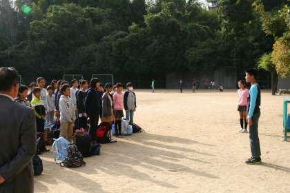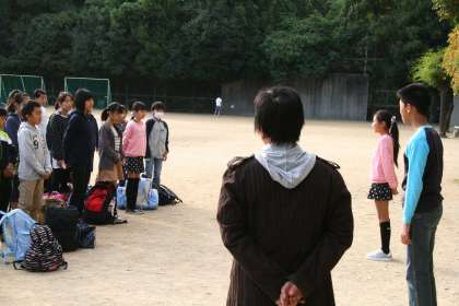 さわやかな秋空の下、6年生 修学旅行の開始式がグラウンドで行われました。