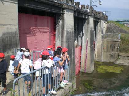 三栖閘門では,川の水位差を調節する門を見たり,その仕組みを学習したりしました。