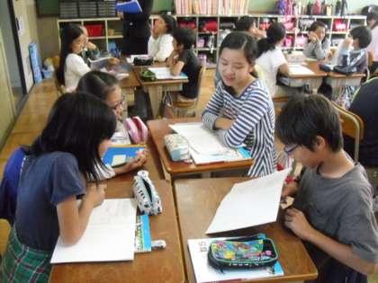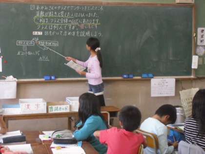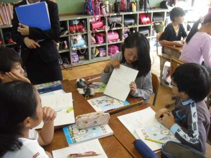 「もとになる数」を求める授業を行いました。いつもは解いたあとに,前で発表してもらって確認するのですが,今日は説明する力を付けるために,グループでお互いに説明し合ってから,全体でも発表してもらいました。「まず」や「次に」などの言葉をしっかりと使って説明することができていました。