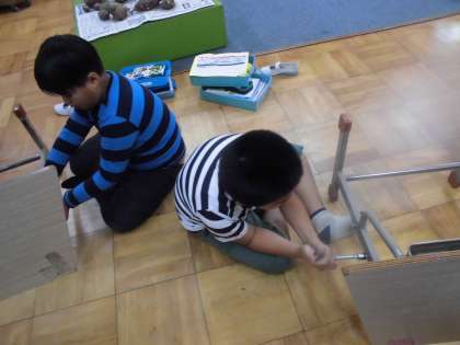 たけのこの3,4年生の机の高さが合わなくなったので調整しました。
