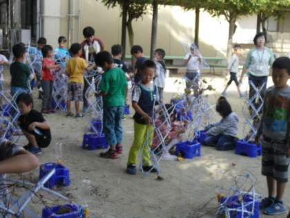 今日は,春から育ててきたあさがおのつるを支柱からとりはずして,リースを作りました。支柱にしっかりと絡みついたつるは,なかなかほどけず苦労しました。今までたくさんお花や種をつけてくれたあさがおがリースに生まれ変わって,子どもたちも嬉しそうにしていました。あとは,リースにいろいろな飾りつけをして,世界に一つだけの自分のあさがおリースを作りたいと思います!!