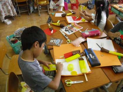 なかよしまつりにむけて,売るための品物を作っています。まだまだ,どんな材質のものを使って品物を作るか試行錯誤中です。本番は,二年生の人数分渡さなければならないので,大量生産しなければなりません。どんなふうに作れば,二年生が喜んでくれそうなものをたくさん作れるか,考えながら進めています。