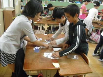 アルファベットの歌を歌ったり,アルファベットカードをAから順に並べたりしながら,活動しました。