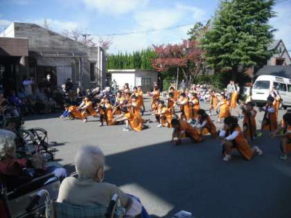 桃陽総合支援学校・京都老人ホーム方面のAコースと、深草福祉農園・京都教育大学附属特別支援学校方面のBコースに分かれて出発しました。到着後、校区探検でお世話になったお礼に、感謝の気持ちを込めて運動会のダンスを披露しました。行きの道では元気いっぱいの子どもたち、帰り道では疲れが見えたものの、最後まで「わっしょいわっしょい!」と掛け声を絶やさずに練り歩くことができました。