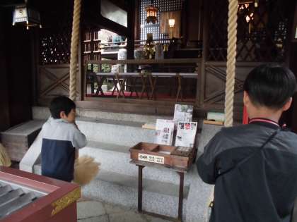 神社では,宮司さんが藤森神社の歴史や建造物について詳しく説明してくださったので,