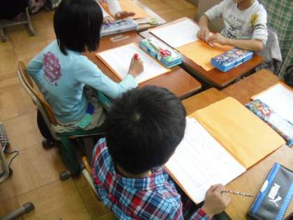 今日は,なかよしまつりに向けて,お店の宣伝文句を考えました。2年生が「あのお店に行きたい!」と思えるお店の宣伝文句を考えられたと思います。お店の準備もいよいよ大詰めです。楽しんで,笑顔でお客さんを迎えられるように頑張って練習しています。