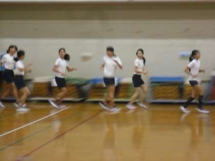 自分たちで自主的にウォーミングアップし,筋トレや,縄跳びを