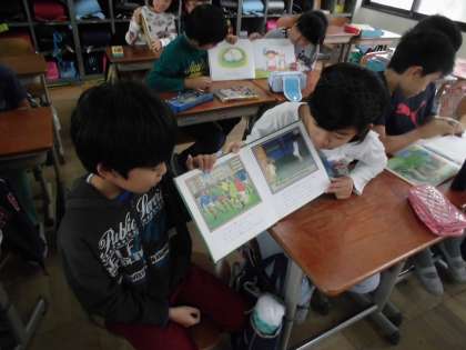 今週金曜日にあるたてわり活動の「ふれあい読書」に向けての練習をしました。昨年までは読み聞かせをしてもらうほうでしたが,今年からは読み聞かせをしてあげる立場になります。今日の練習の成果をいかし,上手に読み聞かせをしてあげることができたらいいな,と思います。